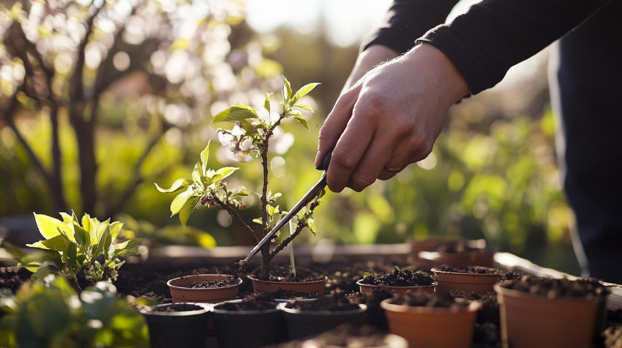 Une fois le rameau prélevé, il est indispensable de retirer les feuilles situées sur la moitié inférieure afin de limiter l'évaporation et de concentrer l'énergie sur la production de racines. Certains jardiniers recommandent l'application d'une hormone de bouturage sur la base de la tige pour stimuler l'apparition de radicelles. Cette substance favorise considérablement le processus d'enracinement, même si le cerisier reste un arbre dont le bouturage demeure plus délicat que celui du figuier ou du groseillier qui s'enracinent plus facilement.